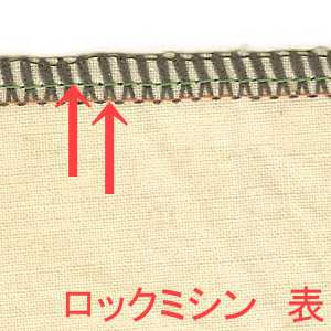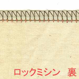 普通のミシンの直線縫いと同じ縫い目も見えます。画像で言うと緑とオレンジです。この縫い目が2本あるので、2本ロックと呼びます。1本の場合もあるので、そのときは1本ロックと呼びます。